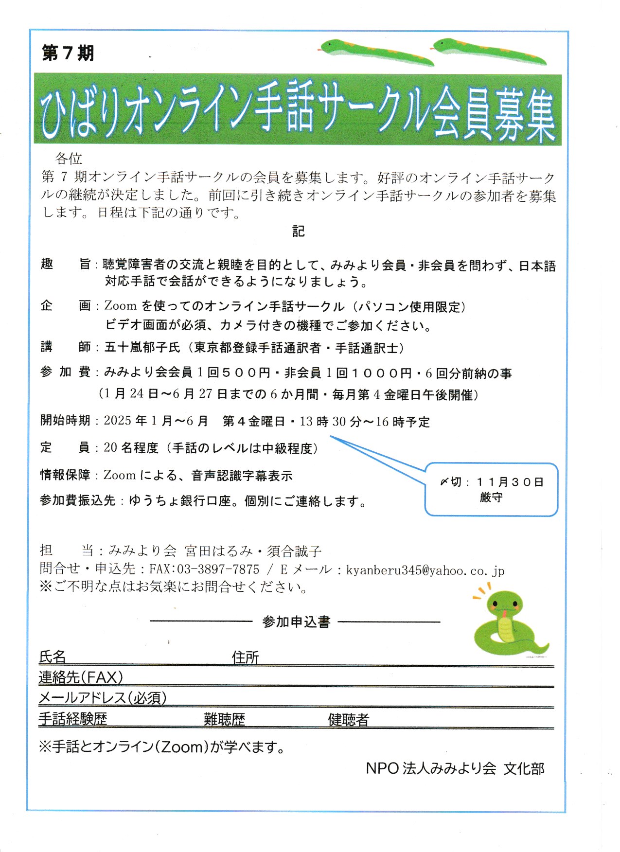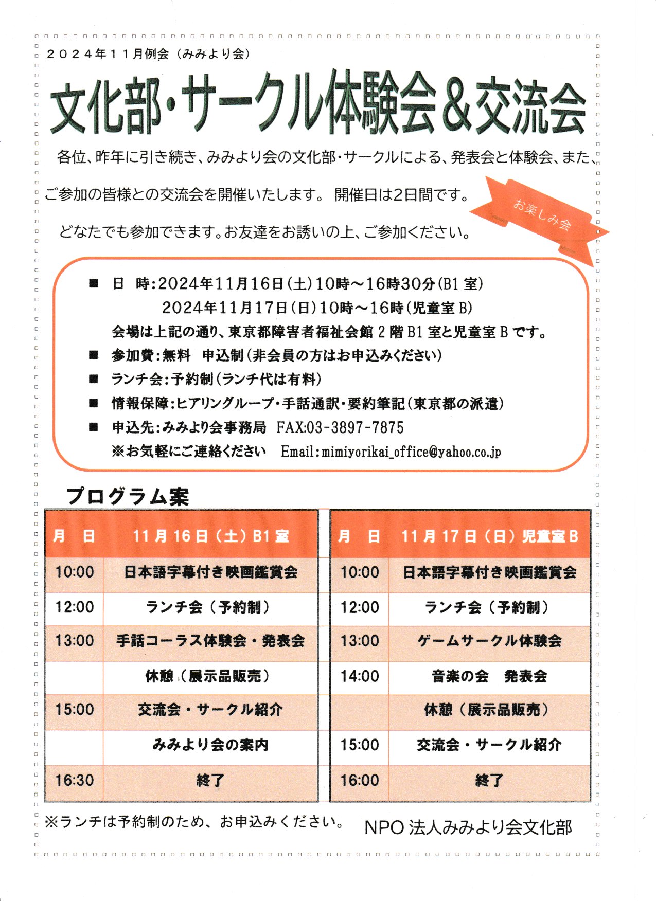 お申込み・お問合せはみみより会事務局まで、お待ちしています。
