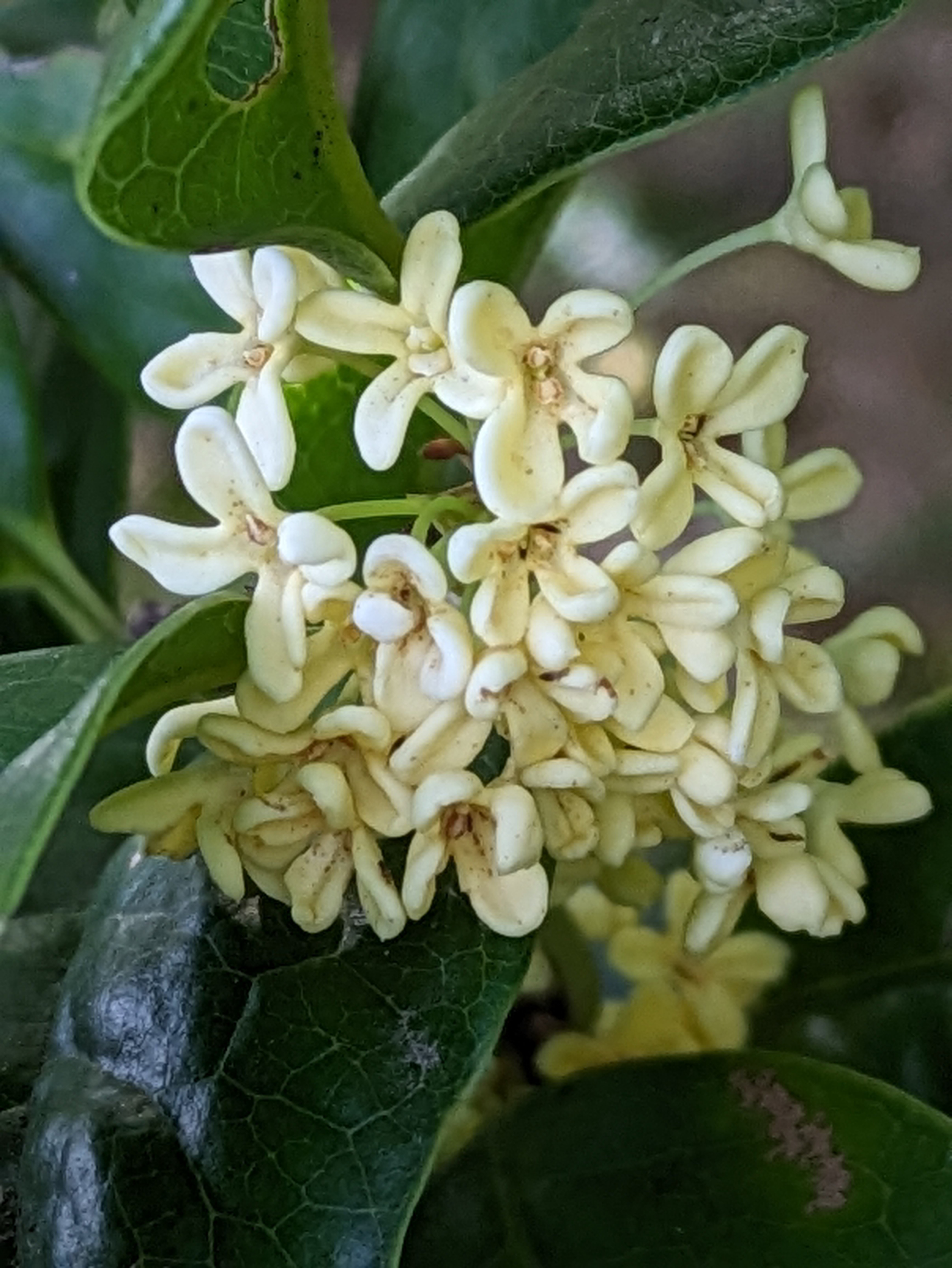 散歩中にほのかに香る金木犀、銀木犀の花が咲いてきました。秋を感じますね。