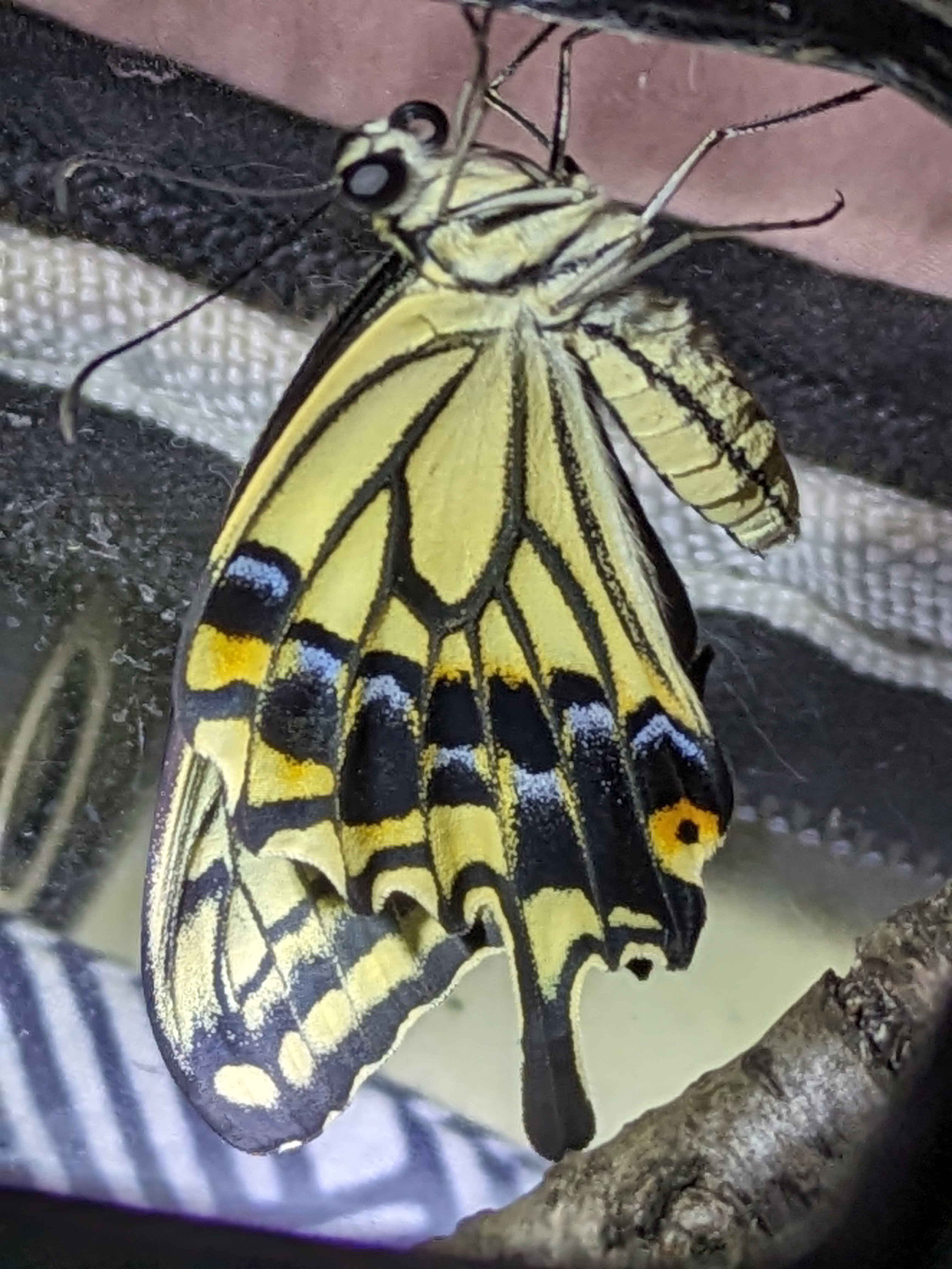 昨夜ナミアゲハが羽化しました。見張り番の私のちょっとした隙に「えーっ」でした。
