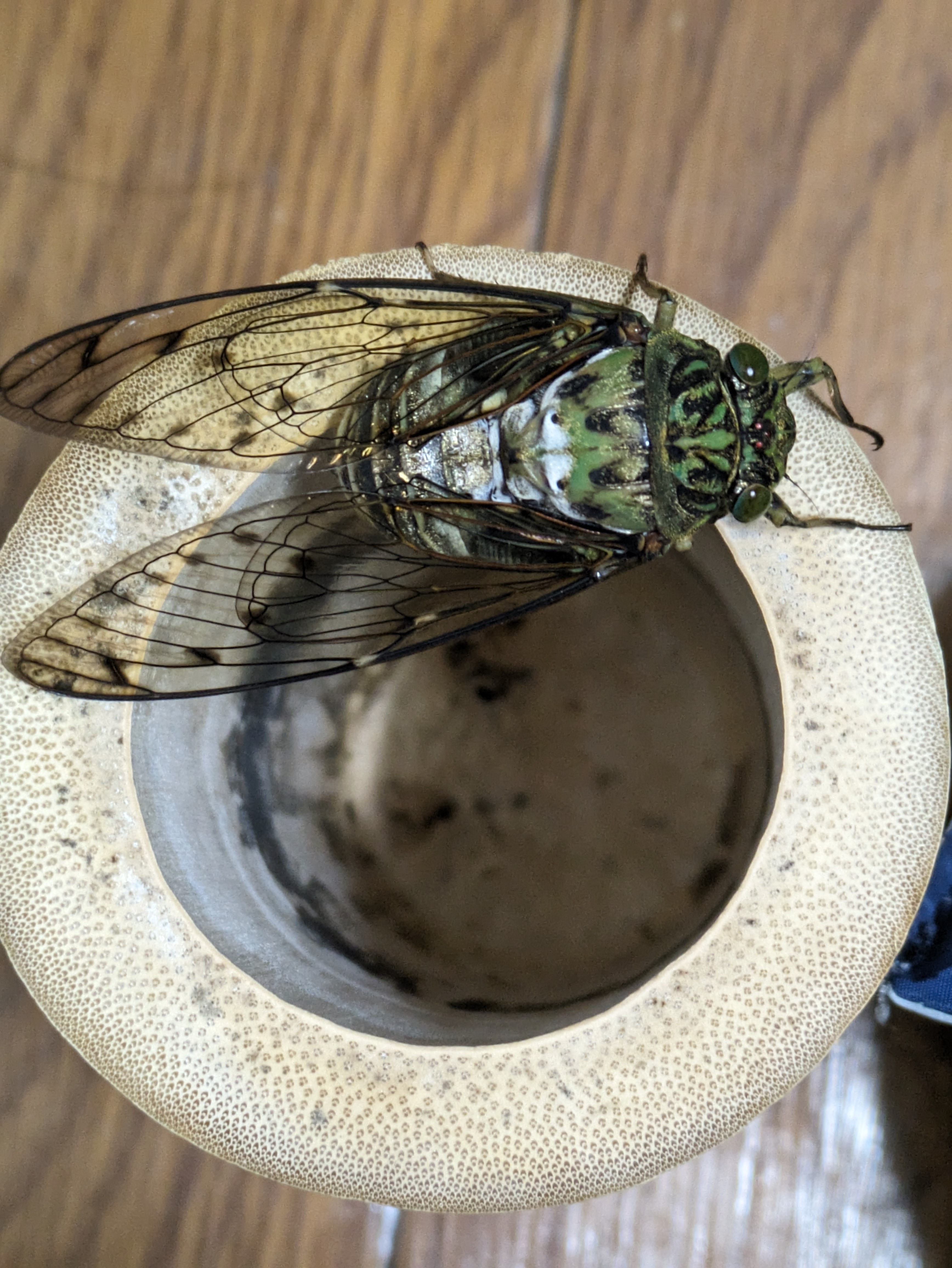 買い物から帰ってきたら、マンションの入口に仰向けになったミンミンゼミを見つけました。