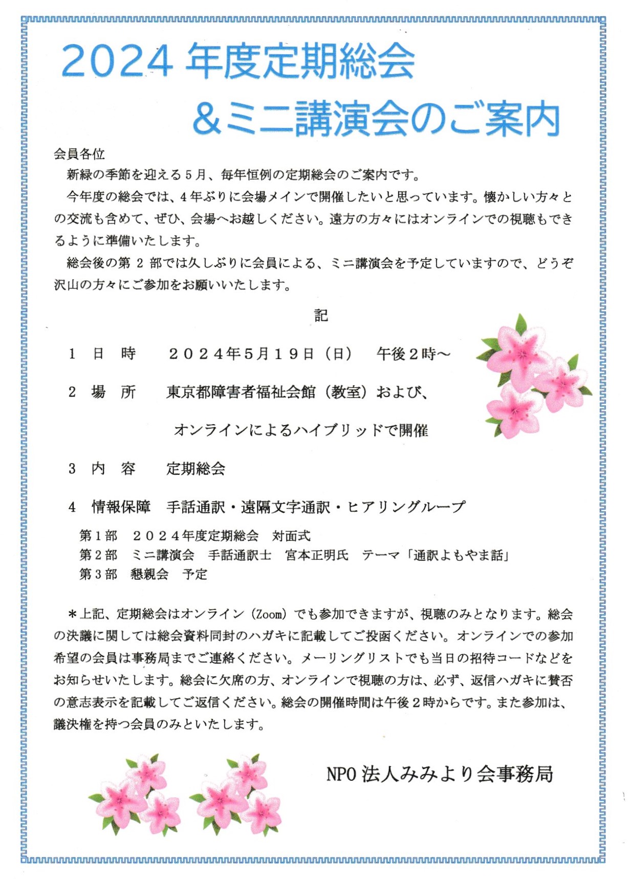 2024年度の定期総会は5月19日(日)です。