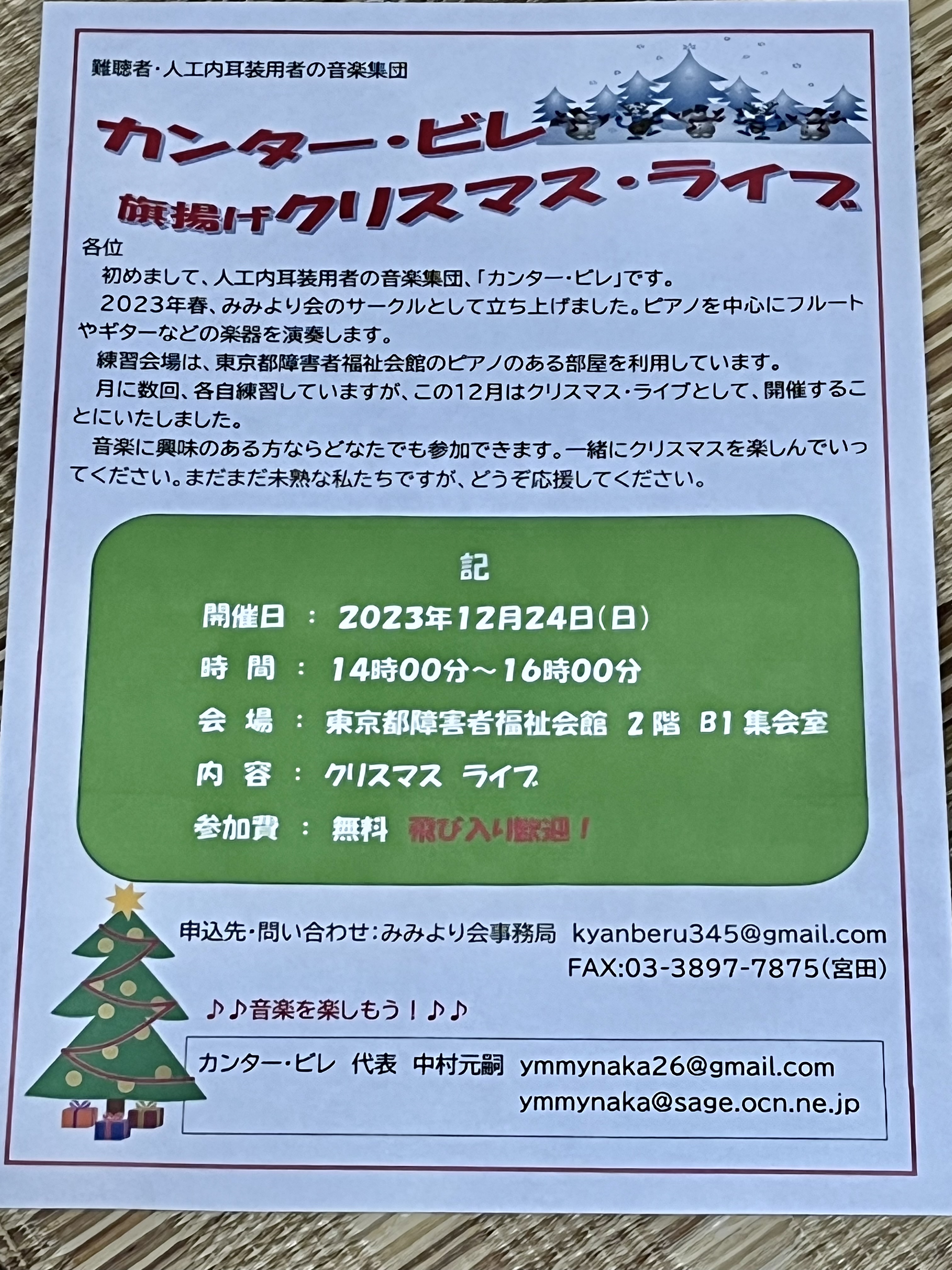 新しい音楽サークルが発足しましたので12月にクリスマスライブを開催することになりました。