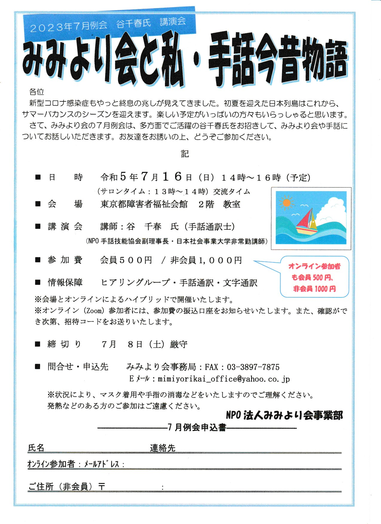 みみより会事務局 FAX03-3897-7875 Eメール:mimiyorikai_office@yahoo.co.jp